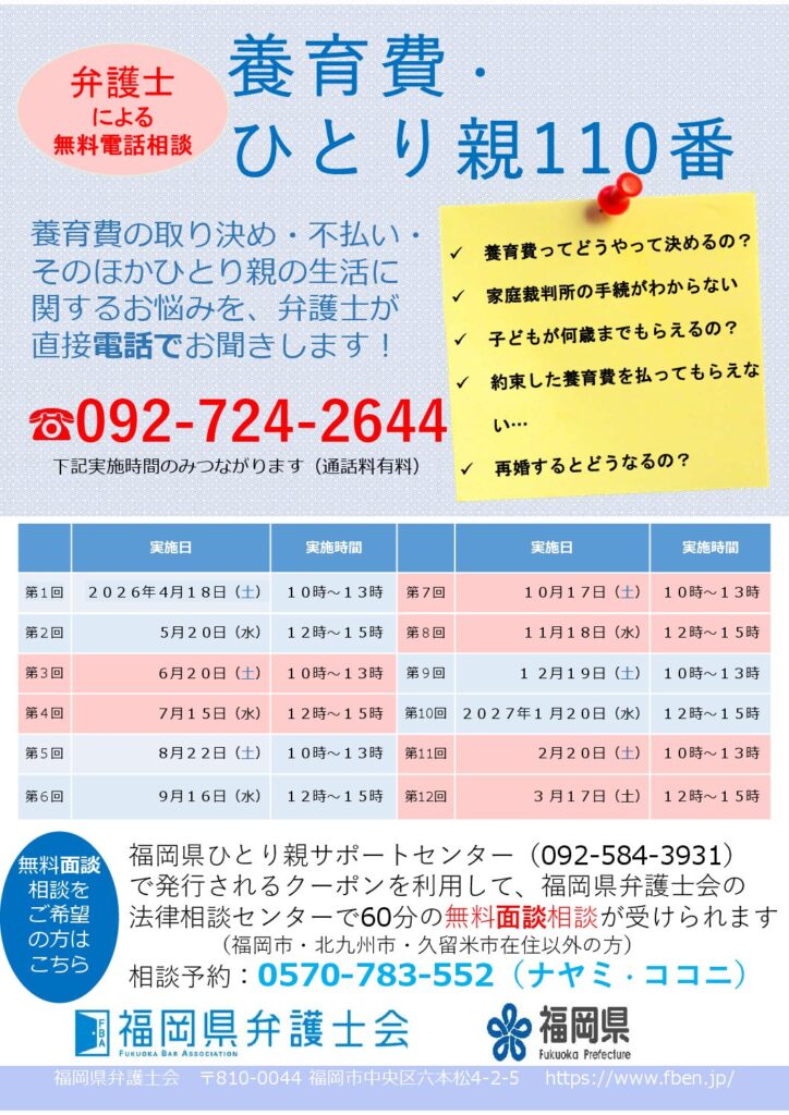 離婚の際には言い出せなかった、またその時決めた金額を一切もらっていない、あるいは数か月や数年で支払われなくなった、といった場合の法的解決を図るために、弁護士による無料の電話相談を行います。