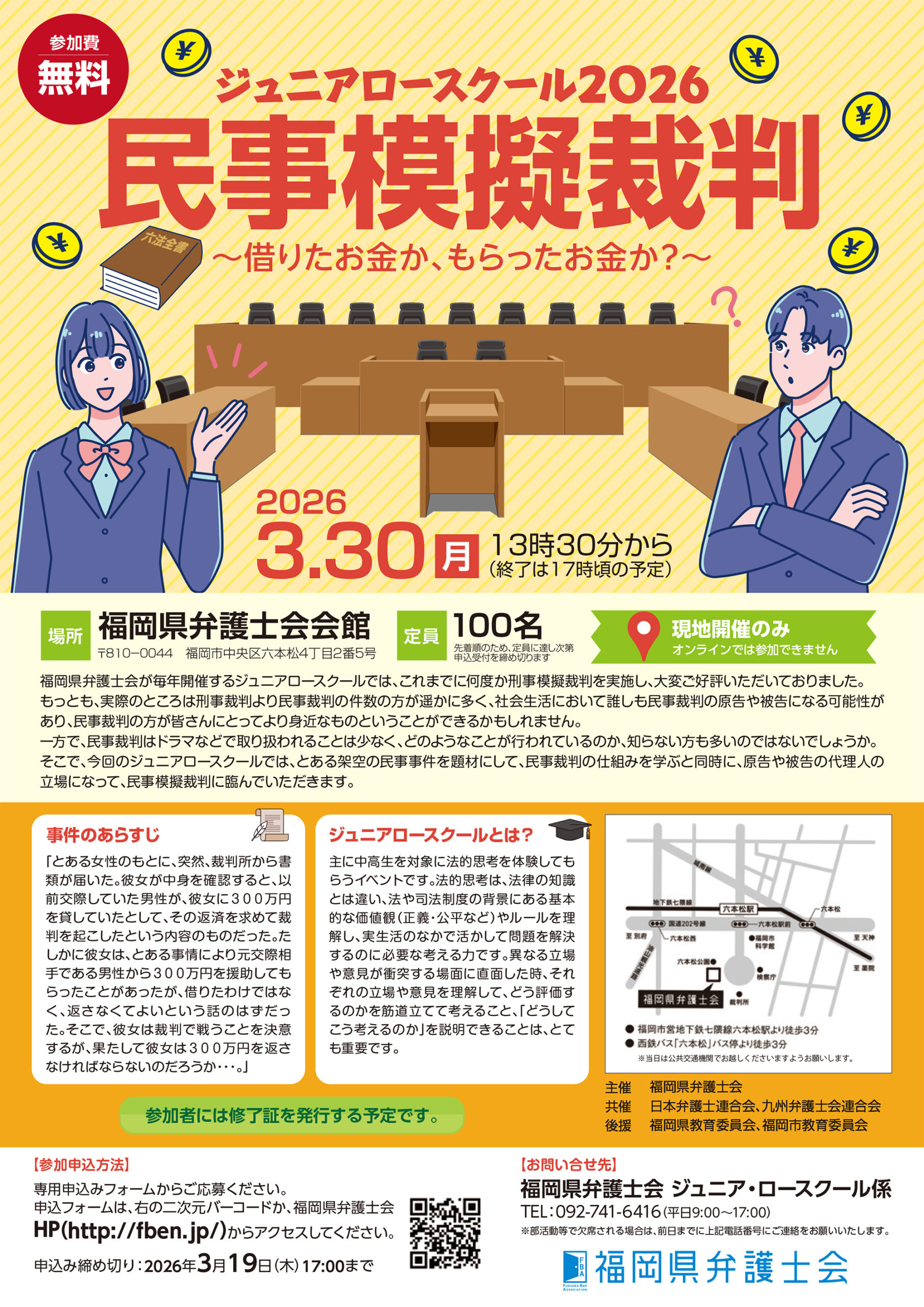 ●問合せ先:福岡県弁護士会 ジュニアロースクール係